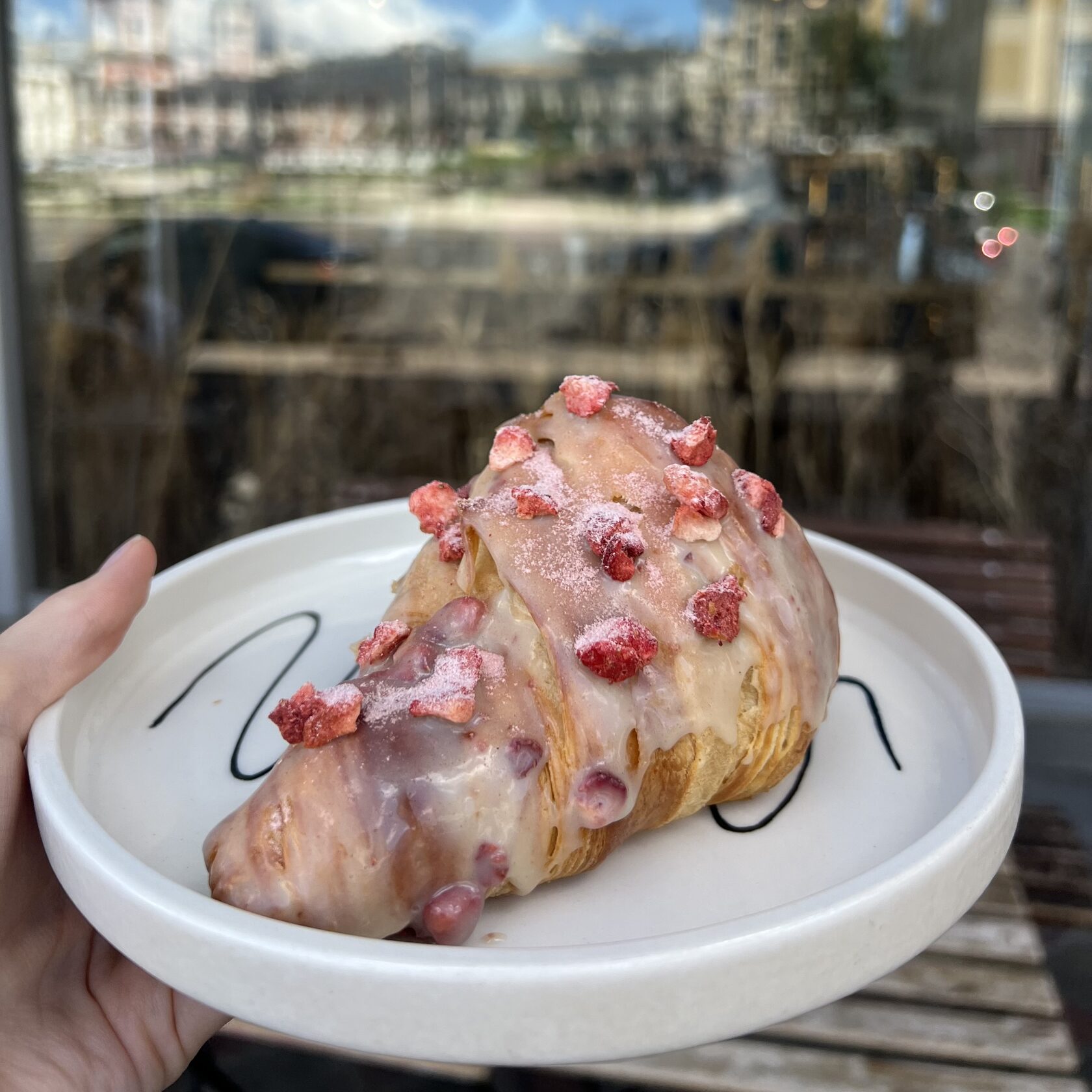 Круассан с белым шоколадом и клубникой